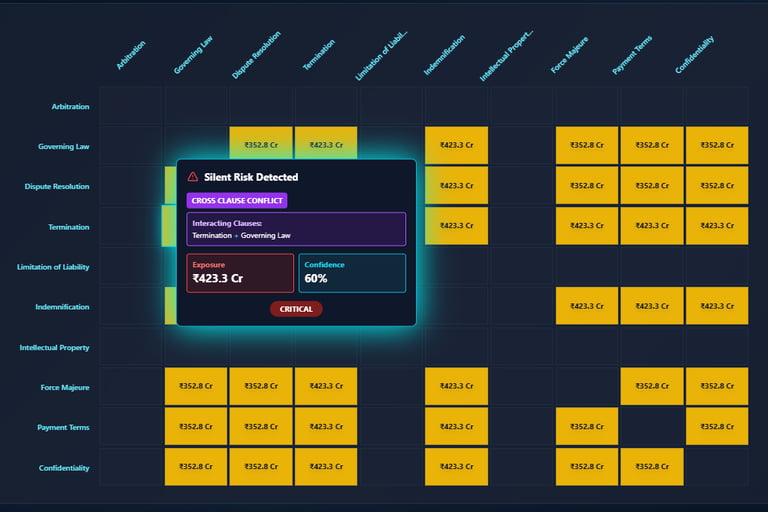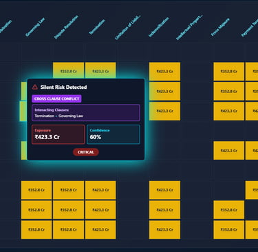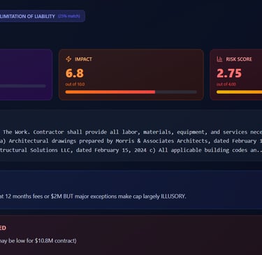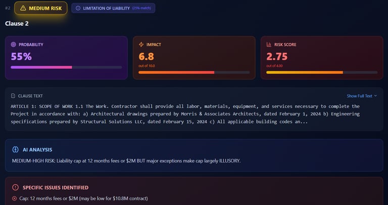 2) Matches your contract clauses against real court cases and legal precedents, telling you exactly where you could lose in a dispute before you sign.
