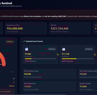 1) Runs thousands of financial simulations on your contracts to show you the realistic range of what a bad deal could actually cost you best case, worst case, and everything in between