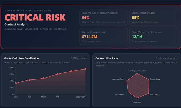 2) Provides jurisdiction-aware scoring - different legal systems treat force majeure differently (common law vs civil law).
